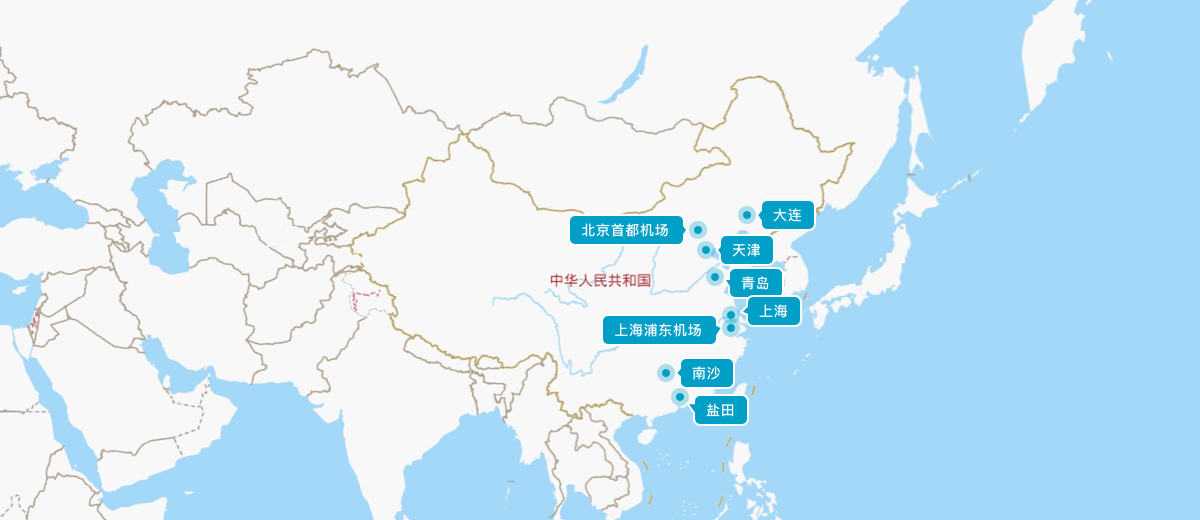 主營口岸為(wèi):天津、上(shàng)海(hǎi)、大(dà)連、青島、鹽田、南(nán)沙等海(hǎi)港,北(běi)京首都(dōu)機(jī)場(λchǎng)及上(shàng)海(hǎi)浦東(dōng)機(jī)場(chǎng)兩個(gè)空(kōng)港。